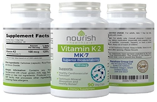 -. Feature : *PURE and NATURAL Vitamin K2 - Mk7 * High Potency and Premium Quality* EASY SWALLOW VCaps / SUPERIOR Bioavailability & Absorpbtion, Supports Healthy Cardiovascular, Kidney function and Insulin Sensitivity / FAST ACTING - Clinical Studies show that Vitamin K2 Mk7 stays in the Blood Stream 10x longer than MK4. / USE with Vitamin D3 to Direct CALCIUM to the BONES and TEETH - Supporting improved Bone Density, Soft tissue and Arterial Health / *SALE* - 3 MONTHS SUPPLY. 100% Satisfaction Guaranteed!! Suitable for Vegitarians & Made in USA.