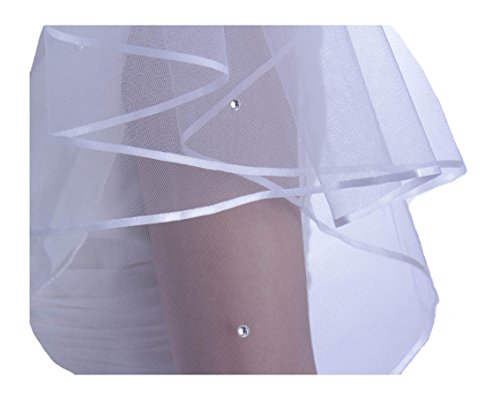 (YIJUNQING)/Accessories/Scarves/DIRECT FROM USA/Yijunqing 2-Tier Satin Edged Bridal Veil with DIAMANTE CRYSTAL, 32"L Waist Length