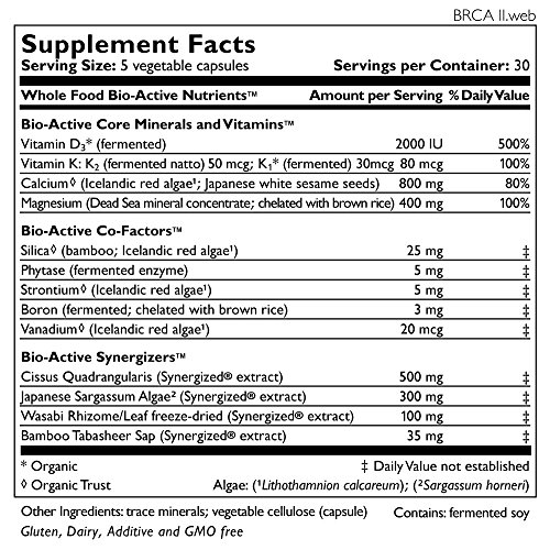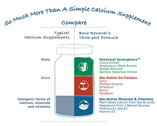-. Feature : Supports healthy bone regeneration / Three-part formula with minerals and vitamins, co-factors, and botanical Synergizers / Contains plant-based, bioavailable calcium from algae and sesame seeds, not "rocks" / Contains important cofactors: D3, K2, Magnesium, Silica, Strontium, Boron, Vanadium / Rare plant Synergizers offer an advanced dimension in bone health