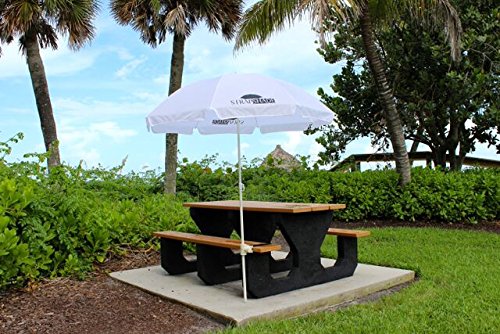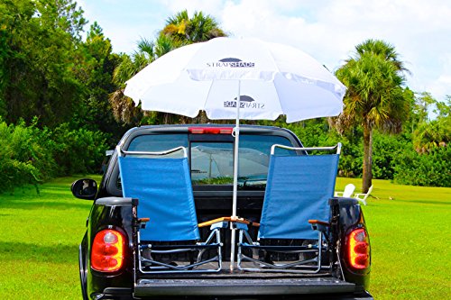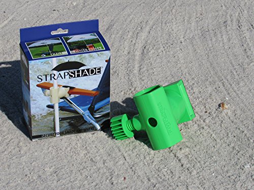 Strap shade is the new and innovative way to secure your beach umbrella. Strap Shade has made it easy for you to mount your umbrella to any object you desire. Securely fasten the hook & loop strap around the surface of where you want it to go. Then rotate the arm into the desired position, insert umbrella and tighten the screw .It can be used on chairs, coolers, benches. boats, tailgates, tables, bucket's, railing and much more! It's universal mount has a protective, nonslip, rubber surface that can be attached to any round, flat or square surface without leaving any marks. This product is great for: tailgating at your favorite football games. water coolers at a job site Outside school and sports events where shade is needed for parents to watch. Boats without a canopy where you can relax under the shade. picnic bench/table on hot days. beach coolers, chairs, pool railing and lifeguards towers. Strap shade has a universal ability to adapt to any object you desire for shade. It can be used to hold your fishing rod on the beach, on a boat or even a jet ski. Mounting to a golf bag cart is simple and can keep you nice and cool during your game. It is great for any and all outside events, even yard sales. Compact design makes it easy for travel, hotels, resorts and theme parks. No more digging into hard compact soil to anchor your umbrella Included in the package are one strap shade, one small strap 12", one large strap 80", one adapter and directions on how to use. *umbrella not included.