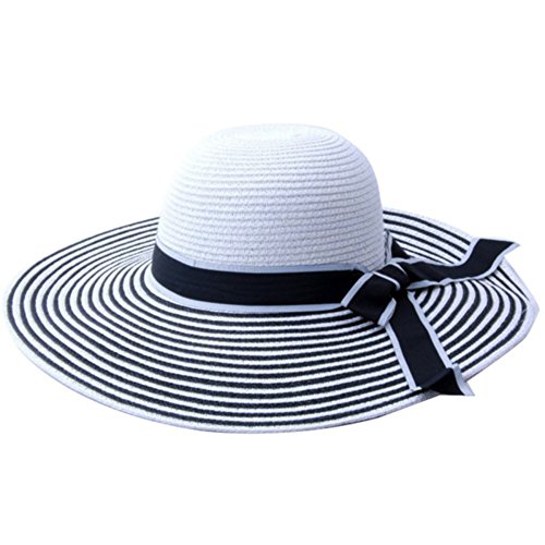 Binding : Apparel Product Description Description: EFINNY Women Summer Beach Sun Straw Hat Wide Curling Hat Foldable UPF 50 Color:Black,White Style: White Black Stripe Material: Straw Weaving Method: Warp Knitting Package:1*pc Sun Straw Hat Note:Because Sun Straw Hat is Foldable , we have folding the item in package,but the crease are recoverable.