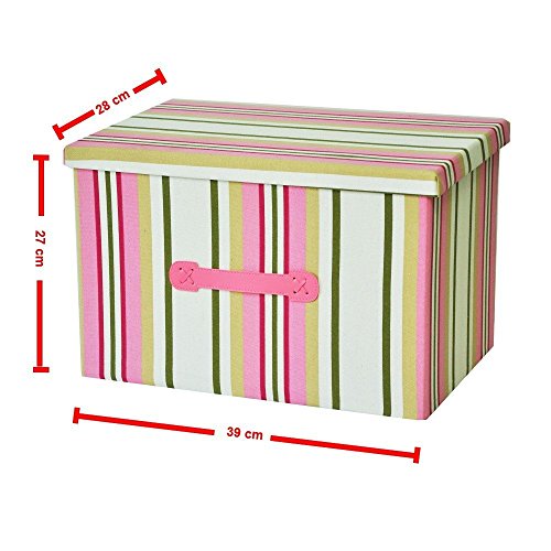 - It is a beautiful high quality Foldable Storage Box, which make of canva. The box is designed with rose, pink, green and yellow stripes, which made it not only a simple box to store staff, but also a perfect home decor material which is fashionable, classic and decent.