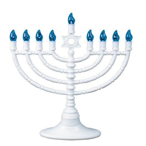 Rite Lite White plastic Electric LED Low Voltage Menorah with Blue Bulbs