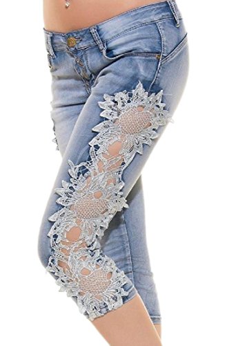 -. Title : Tootess Women Stitch Pockets Hollow Out Bodysuit Denim Pants