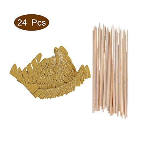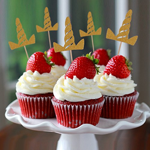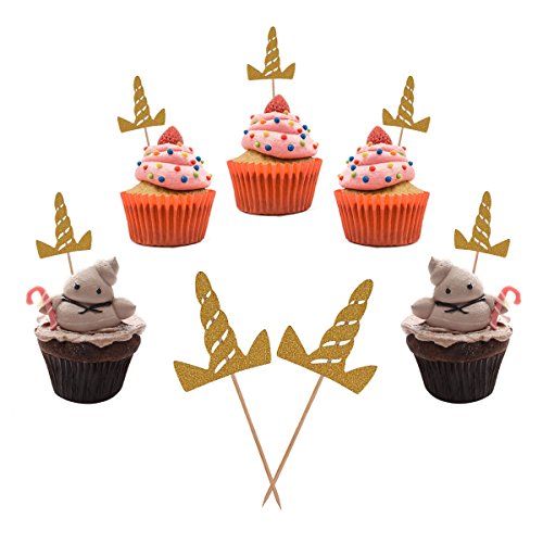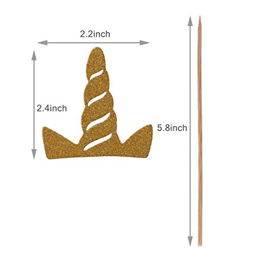 iiniim Set of 24 Glitter Gold Unicorn Cupcake Toppers Party Cake Decorations with Wood Sticks for Baby Shower Birthday Party Favors