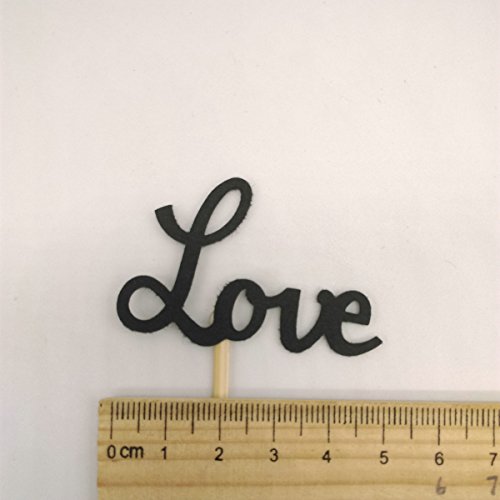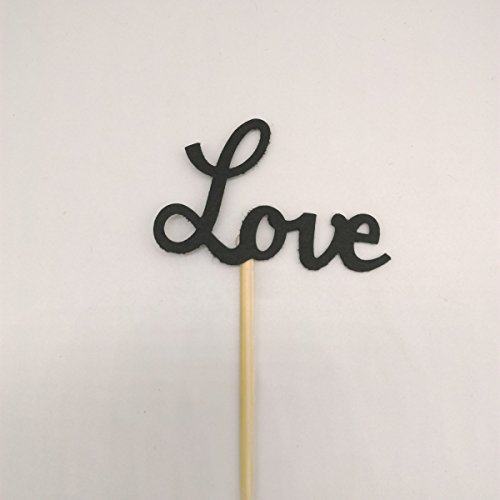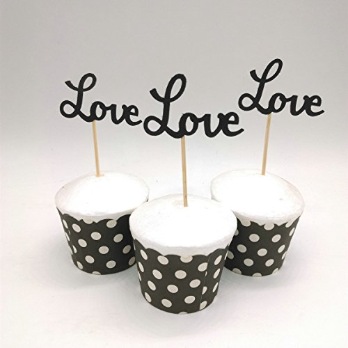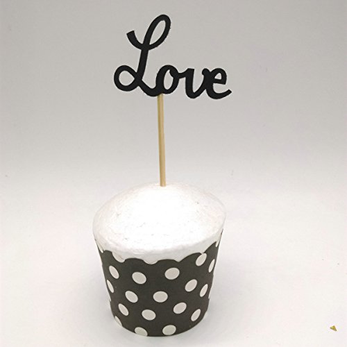 24 Black Glitter Paper LOVE Wedding Cupcake Toppers