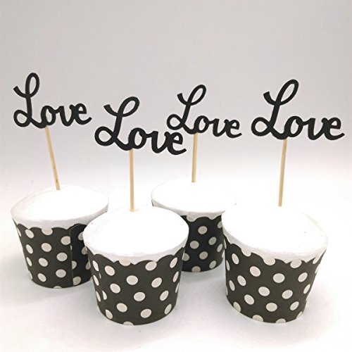 Hemarty 24pcs Black Love Cupcake Toppers Wedding Cupcake Toppers Valentine's Day Birthday Appetizer Horderves Food Pick