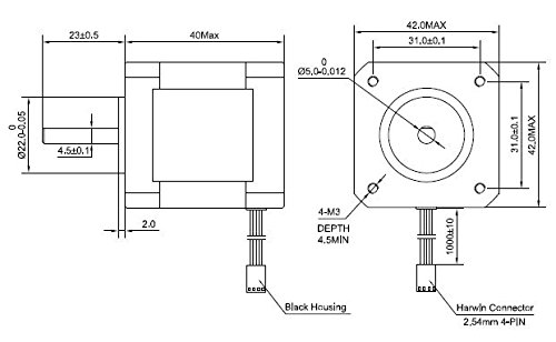 5PCS Nema17 Stepper Motor 2A 64oz.in 40mm Body 4-lead 1m Cable W/ Connector