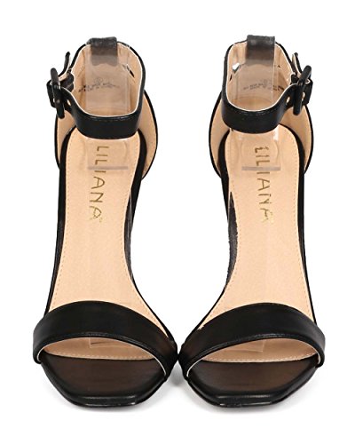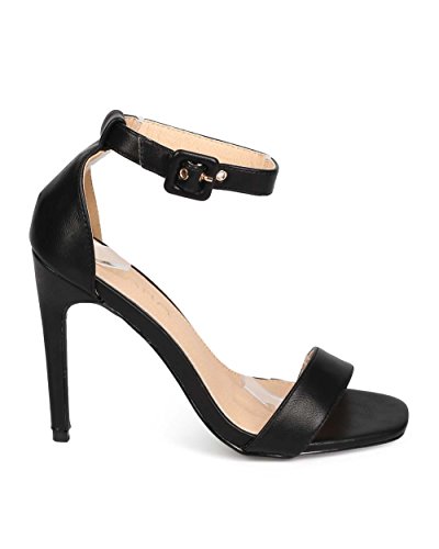 Liliana ED74 Women Leatherette Open Toe Ankle Strap Stiletto Single Sole Sandal - Black