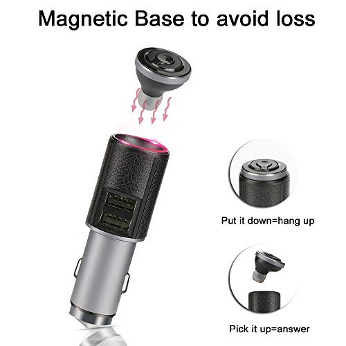 3 IN 1 MULTI-FUNCTIONAL COMPACT DESIGN: Perfect combination of car charger (with magnetic connection + Dual USB ports), wireless bluetooth headset and safety hammer. Used as safety hammer to break window when in emergency, and its movable port ensures more stable charging.