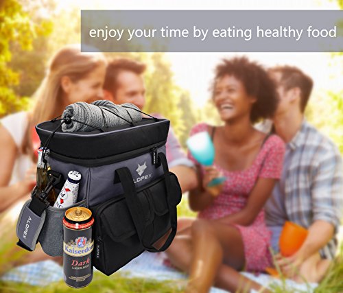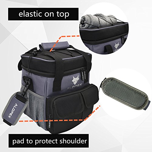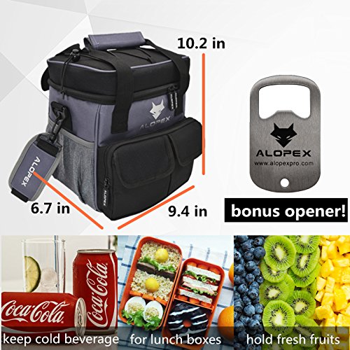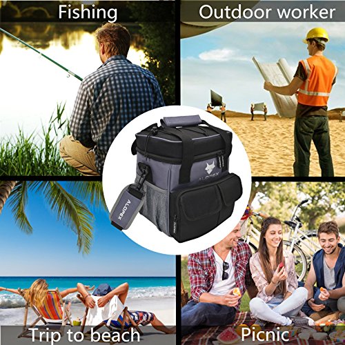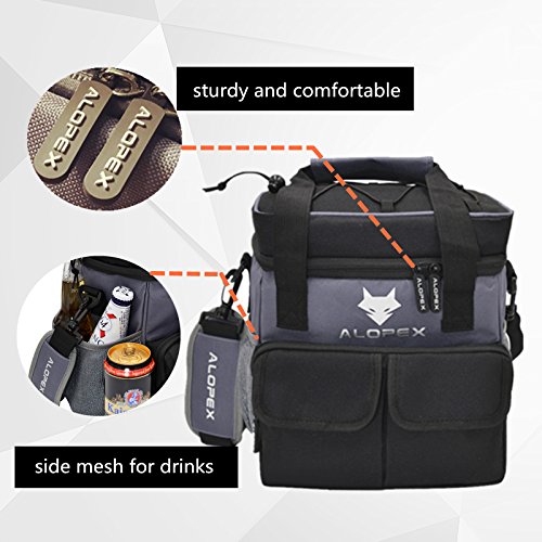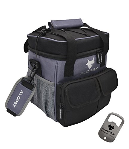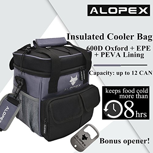 ALOPEX 12-Can Cooler Bag Insulated Outdoor Lunch Bag with Detachable and Adjustable Shoulder Strap, Bonus Bottle Opener, Black and Gray