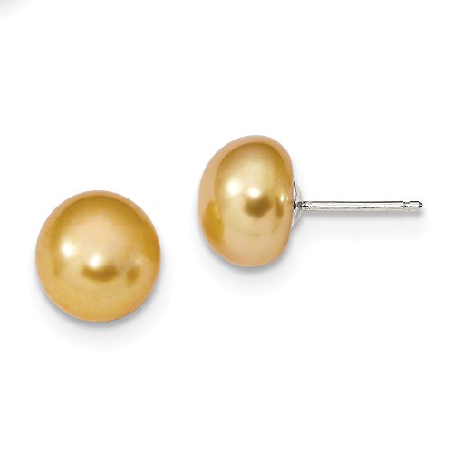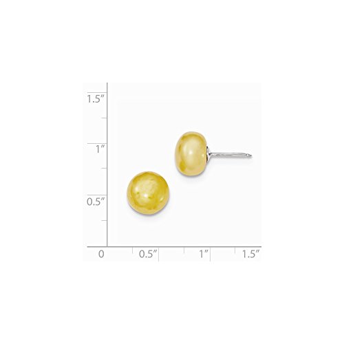 Solid 925 Sterling Silver 10-11mm FW Cultured Button Simulated Pearl Yellow Earrings