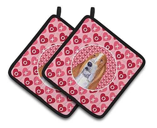 Caroline's Treasures Basset Hound Hearts Love & Valentine's Day Portrait Pair of Pot Holders SS4528PTHD, 7.5HX7.5W, Multicolor