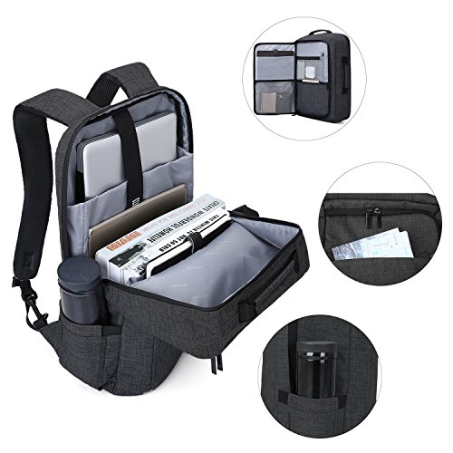 -. Feature : Dimensions: 18.9 L x 5.3 W x 12.6 H inches; Weight: 2 LB; This multi-function convertible bag fits up to 15.6 inches laptop/books/iPad/tablet/macbook. / Two-way carrying styles: Backpack transforms into briefcase very easily. The padded shoulder straps can be hidden in the back pocket with Velcro strap when you use it as a briefcase. / Water-resistant: Made of highly durable eco-friendly polyester, this backpack is splash-proof and is adE.q.u.a.t.ely protected from light rain. / Multiple compartments: 1 padded laptop compartment, 1 padded divider for your ipad, kinder and tablet, 1 large main compartment for A4 files, magazines, notebooks, adapter, wallet, etc, 1 slip pocket and 2 exterior front zipper pocket with many dividers for your iPhone, pens, mouse, power bank and small accessories. / Built-in anti-shock foam can always prevent impact force to protect your laptops. Ideal for business, travel, work, professional, college or high school, daily commute or every day use. Perfect gift for your friends.