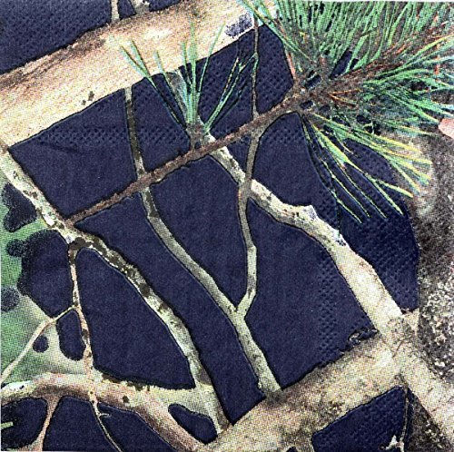 Sturdy and Absorbent 3 ply Navy Blue Camouflage Print Paper Napkins Ideal for use at your Outdoors Related Parties and Events Popular with Hunting and Fishing Enthusiasts Too! 16 Navy Designer Cocktail Size Napkins in each Package