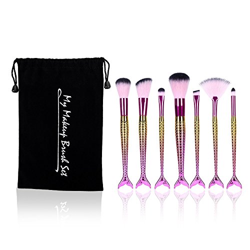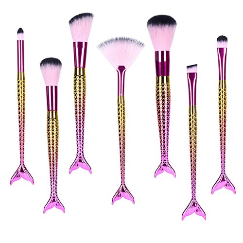 TTRWIN 7Pcs/set Mermaid Makeup Brushes Set Blending Powder Eyeshadow Contour Concealer Blush Comestic Foundation Beauty Make Up Kits