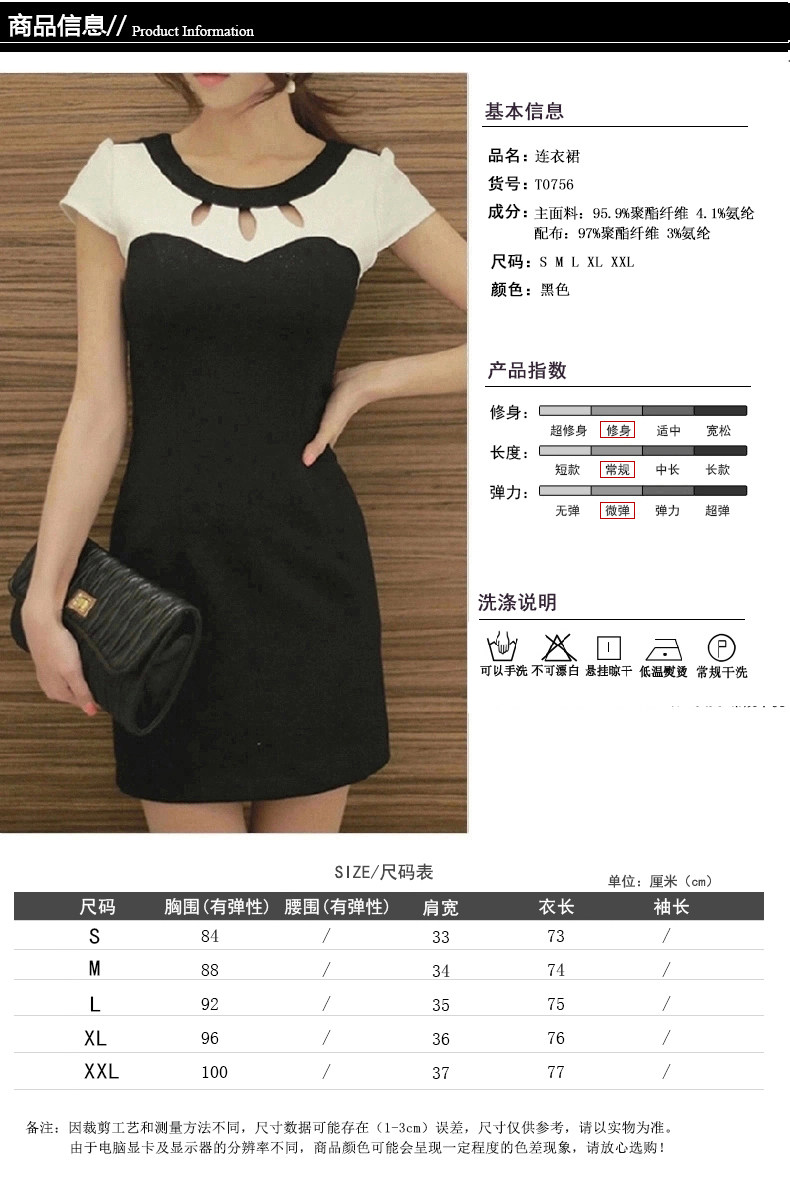 彩黛妃春夏新款韩版女装大码时尚气质修身显瘦镂空衣领连衣裙 |