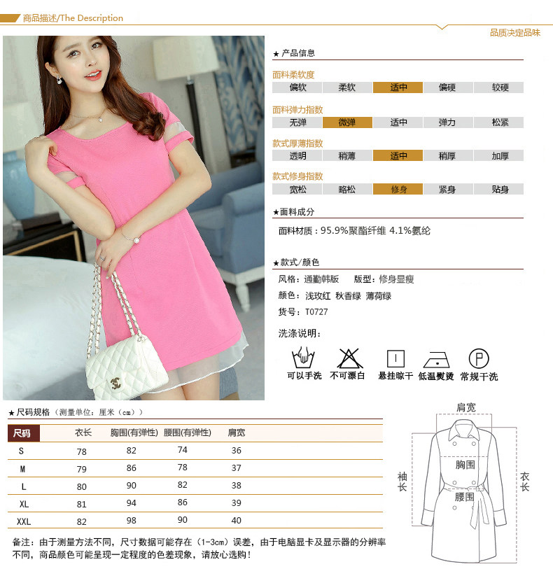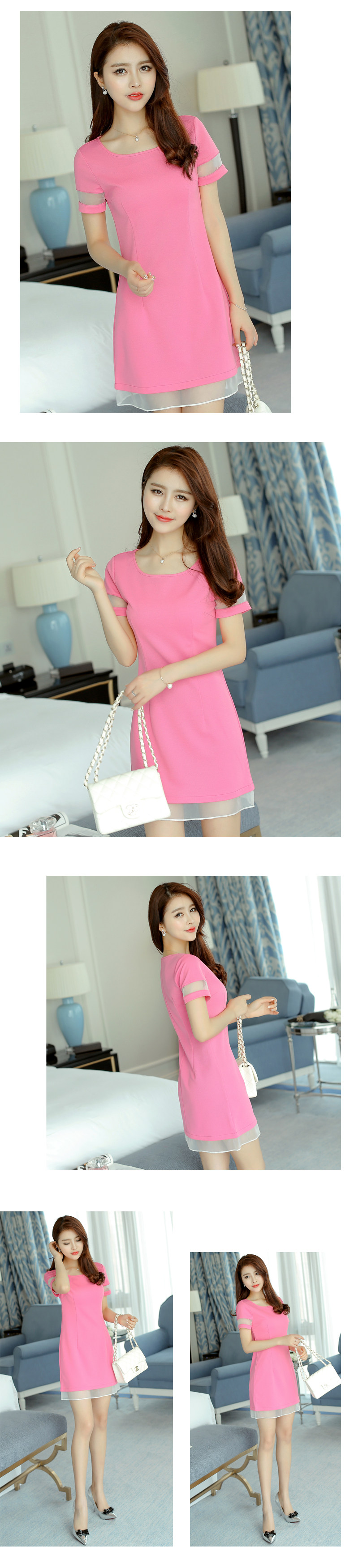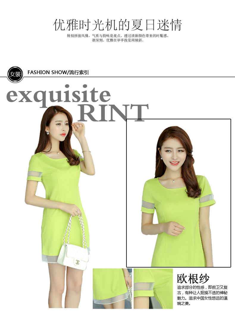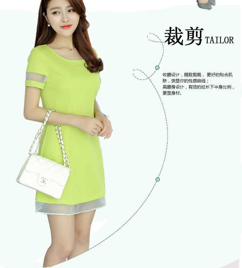 彩黛妃春夏新款女装修身短袖欧根纱拼接韩版大码针织连衣裙女 |