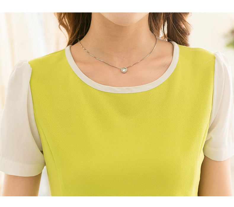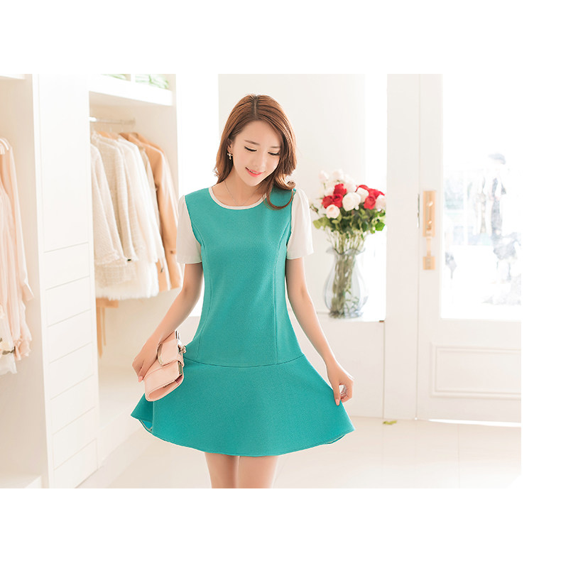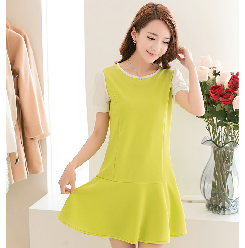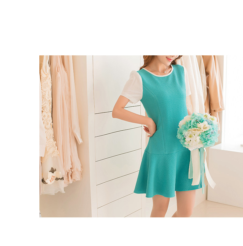 彩黛妃春夏新款女装时尚短袖大码气质修身拼接韩版雪纺连衣裙 |