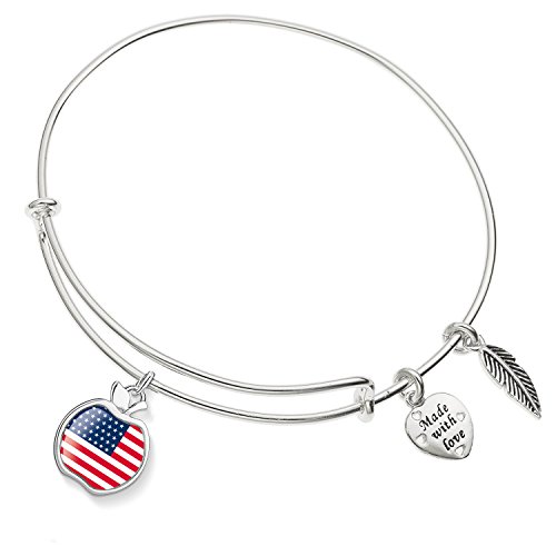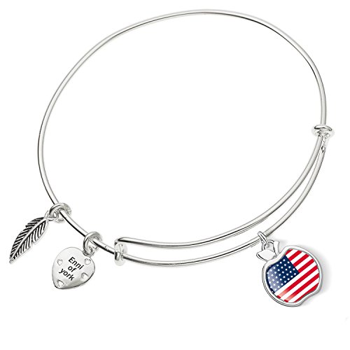 Enni of York Big Apple Flag USA Charm Expandable Ani-Silver Bangle Bracelet