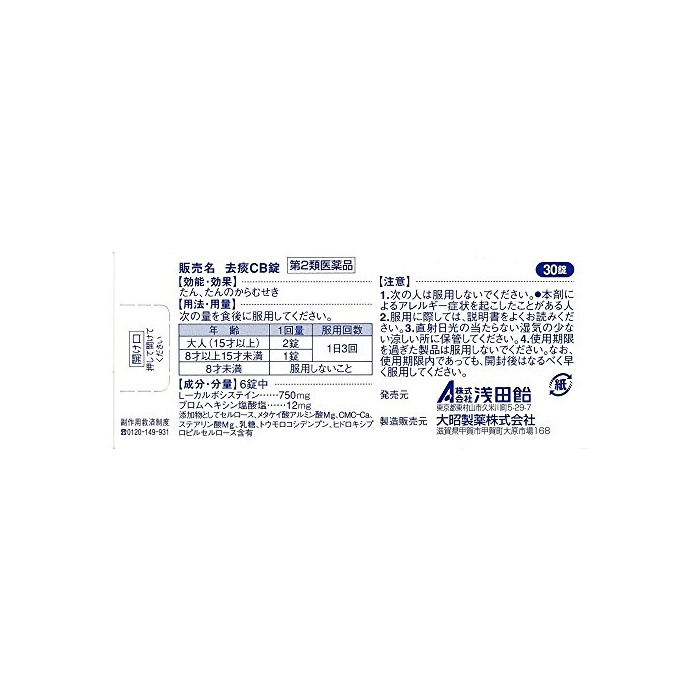 원본상품명: 【第2類品】去痰CB錠 30錠