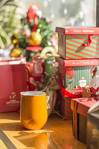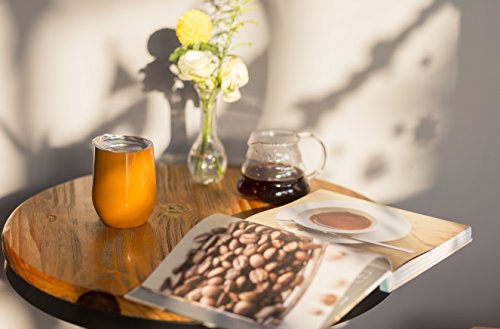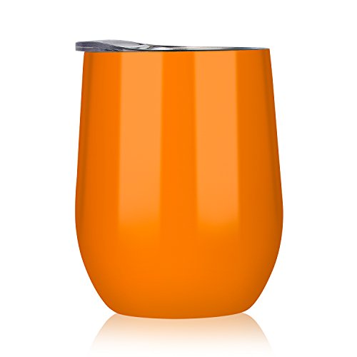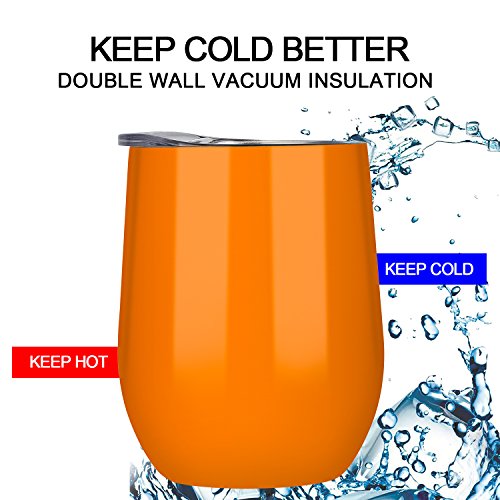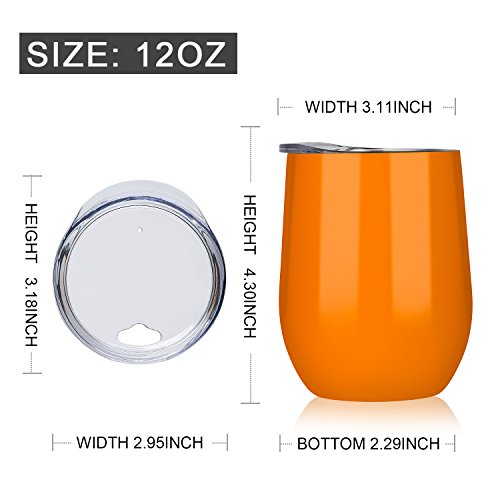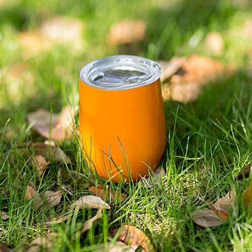 DOKIO 12 Ounce Orange Wine Cup Stemless Stainless Steel Double Wall Vacuum Insulated With Crystal Clear Lid Great For Ice And Hot Drink Mug Coffee Cup For Home Office Outdoors