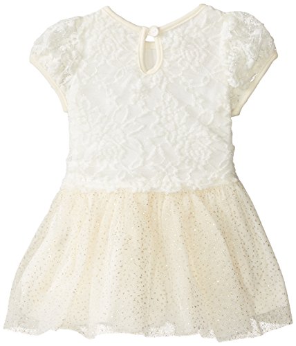 Dress with floral printed bodice tacked on flower and printed mesh glitter attached skirt with ruffles and panty