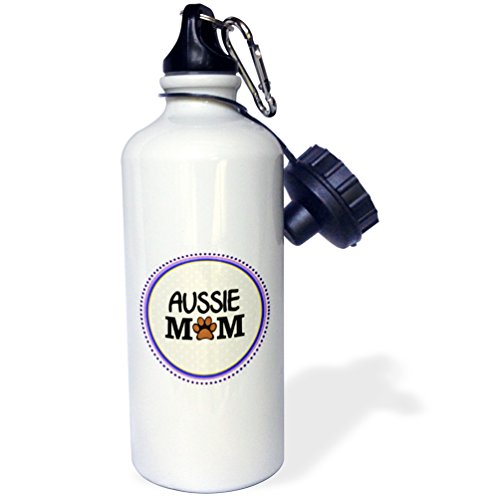 3dRose wb_151684_1 "Aussie Dog Mom-Australian Shepherd Doggie mama by breed paw print doggy lover love mum pet owner" Sports Water Bottle, 21 oz, White