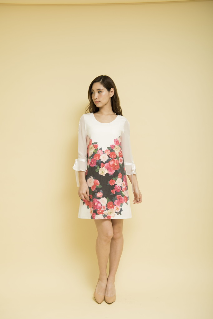 Playfulなアイテムを提案オリジナルフラワープリントがキュートなAラインワンピース。