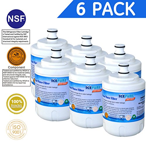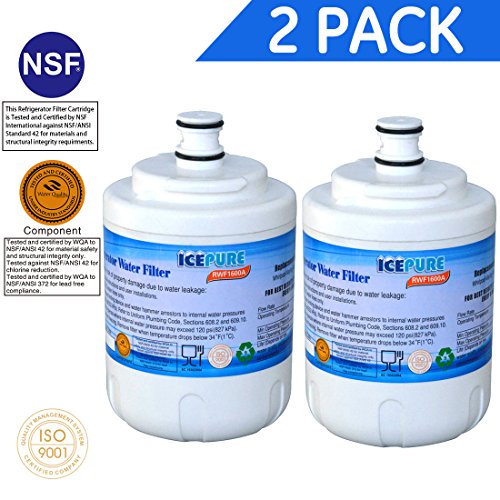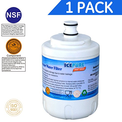This IcePure refrigerator water filter contains a compressed carbon block that provides tremendous capacity to remove and/or reduce impurities and sediment that may be present in your drinking water. The carbon block has millions of active sites on it's surface and within the structure which can absorb impurities like a sponge, and can adsorb and hold other types of impurities on its surface like a magnet. Additionally this filter can catalytically breakdown other impurities very similar to the way a catalytic converter works in your automobile. These processes ensure that you are getting the cleanest and best tasting water possible. This filter should not be used with water that is micro biologically unsafe or of unknown quality, without adequate disinfection before and or after the filter. This filter has been tested by the manufacturer against ANSI/NSF Standard 42 for the reduction of Chlorine Tastes and Odors. MWF compatible filter removes the following contaminants: 99.30% of Lead at pH 6.5 99.90% of Lead at pH 8.5 94.50% of Mercury at pH 6.5 96.60% of Mercury at pH 8.5 99.92% of Asbestos 89.60% of Benzene 99.90% of P-Dichlorobenzene 99.99% of Cysts 98.70% of Carbo Furan 97.00% of Chlorine 99.10% of Turbidity 97.60% of Particulates (Class I). All filters are certified to be free from leaks if properly installed and to function with the latest modifications from the OEM. All components NSF-42/53 certified. The Activated Carbon Block Filter inside has NSF42/53 approval. The quality of the filter is the same or better than the OEM branded filter. Manufactured in an ISO9001 facility.Feature