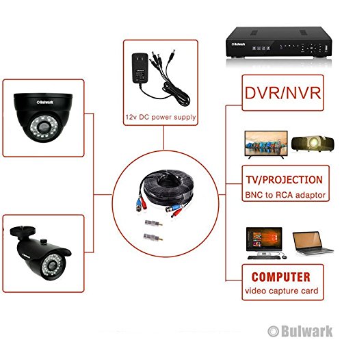 BULWARK 100ft BNC Video Power Cable Security Camera Wire Cord Extension Cable with 2pcs BNC to RCA Connectors for CCTV DVR Surveillance System
