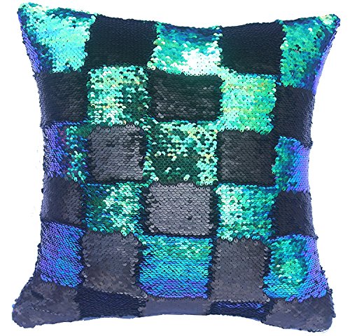 Two Colors Reversible Sequins Mermaid Pillow Cases 1616" White and Black (Multi Green and Black)