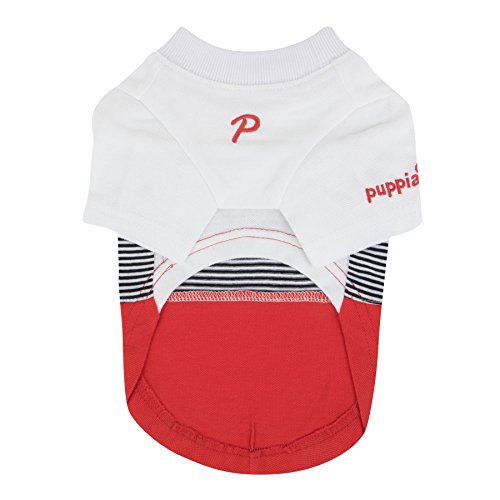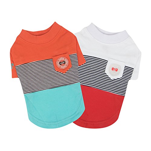Studio : Puppia Int'l Inc. Publisher : Puppia Int'l Inc. Binding : Misc. Product Description The Zachary Round Neck T-Shirt is part of the Puppia Spring/Summer Collection. Featuring a striped pattern and solid schemed. Made out of 100% cotton, it is available in Orange and Snow White in sizes ranging from Small to Large. Please note that because these products were created with small/medium dog breeds in mind, larger sizes (i.e. Large, Extra-Large, etc.) do not necessarily mean larger breeds. Please refer to image of the size chart. It is very important to measure your dog with a tape measure according to the size chart. As a general rule of thumb, if your dog falls in between sizes, it is usually better to go up a size. Weight figures are for estimates only. Always use actual measurements. Please note that when measuring your dog for clothing, it's very important to have an accurate measurement of your dog's neck and chest girth. IMPORTANT: Please note that when measuring your dog, the measurement for the neck must be taken at the BASE OF THE NECK and chest girth must be taken behind the front legs. Also it is important to take into account the size of the dog's head as well as neck girth and chest girth. Since some dogs have a much larger head than their neck, please be sure that the neck opening is large enough to slide over your dog's head. 0