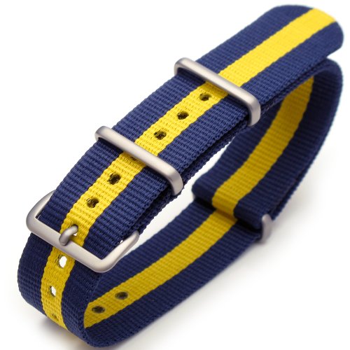 -. Title : 20mm G10 Nato James Bond Nylon Watch Strap Brushed Buckle - Blue & Yellow