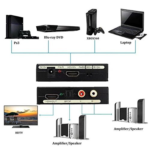High Definition Audio:No Signal Loss.HDMI Splitter Extracts digital audio signal from HDMI source device and converts it to 5.1 channel digital surround or 2 channel analog stereo output