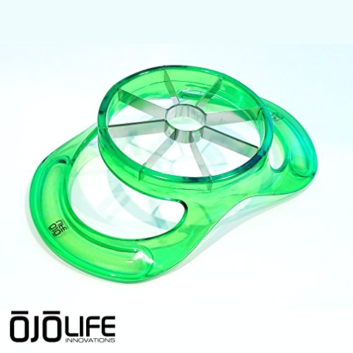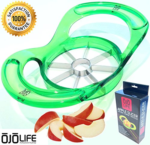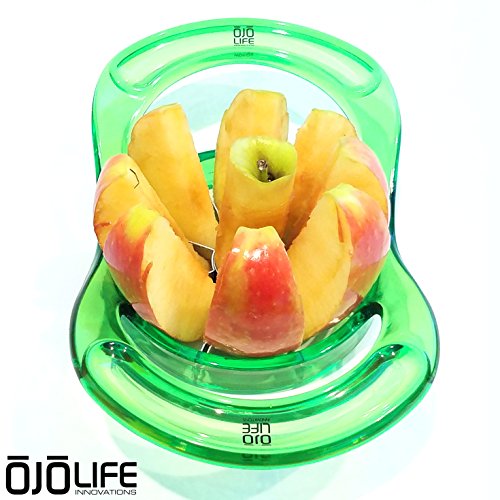 - RAZOR SHARP STAINLESS STEEL APPLE SLICER AND CORER: This unique apple and fruit slicer from OjoLife Innovation is designed with the highest quality stainless steel that will beautifully slice your fruit into eight perfect pieces!