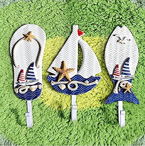 -. Title : Wendin Large Art Hook Wooden Nautical Coat Hat Clothes Towel Wall Hooks Hangers Hanging Decoration Wall Mounted Key Hook Metal Home Decor 3pcs Mediterranean Style Slippers Sailing Fish Utility Hook