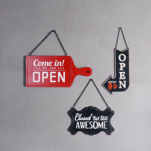 NIKKY HOME Double Sided Metal Open and Closed Store Signs with Chain Hand