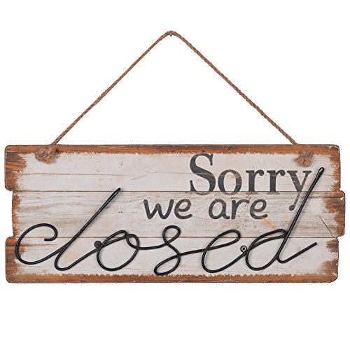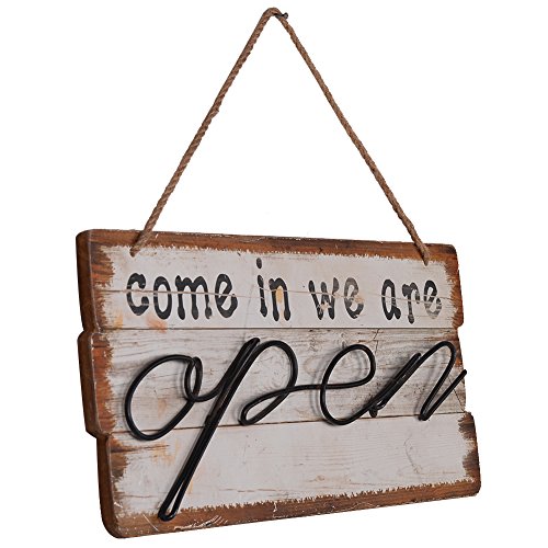 NIKKY HOME Wooden Double Sided Store Open and Closed Signs for Business with Rope, 16 x 1.12 x 11.37 In, White
