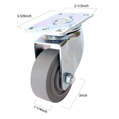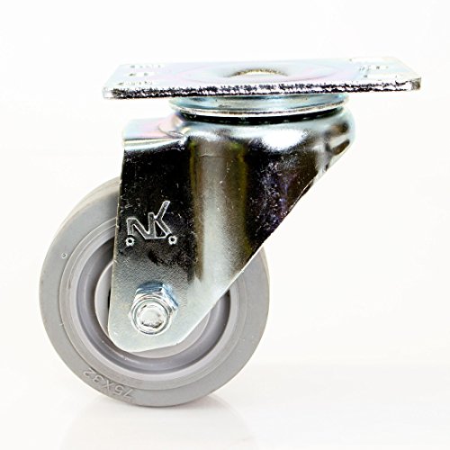 NK CTPR3SS Swivel Plate Caster with Non Marking Soft Gray Rubber TPR Wheel (3 -Inch, Swivel Caster)