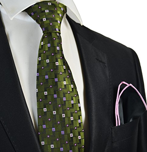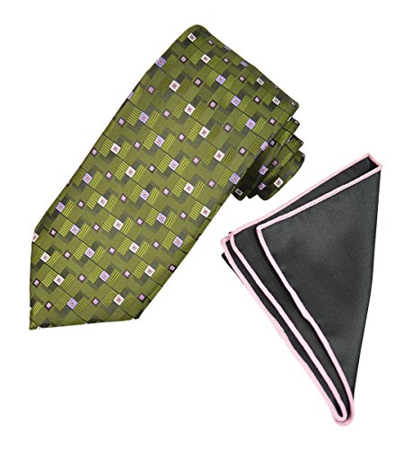 (Paul Malone)/Accessories/Ties/DIRECT FROM USA/Vineyard Green Men's Tie and Contrast Pocket Square Set
