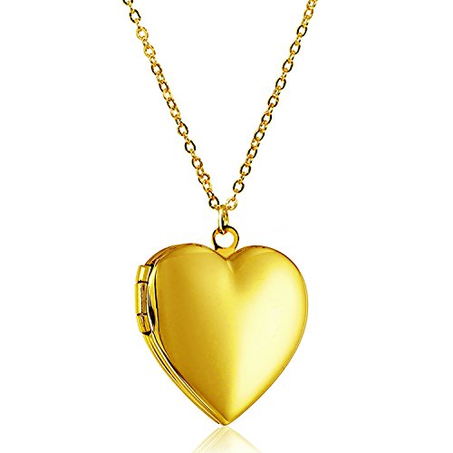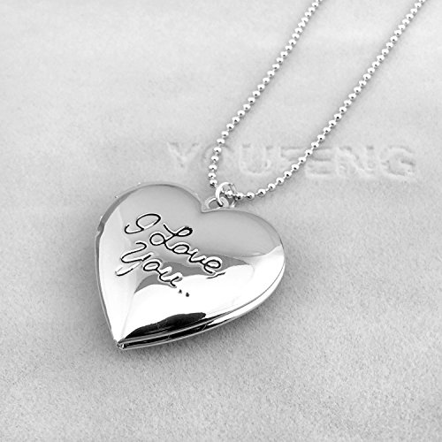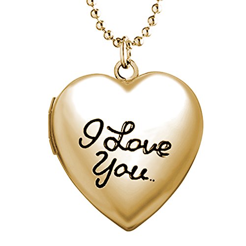 About YOUFENG Jewelry Polished love heart locket pendant necklace ,Engraved "I Love You", Memories photo locket pendant with 18+5" ball chain,gold plated