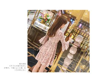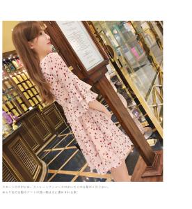 花柄ワンピース 編み上げワンピース フレア袖 シフォンワンピース ミニ丈 Vネック プチプラ 大人カジュアル ハイウエスト