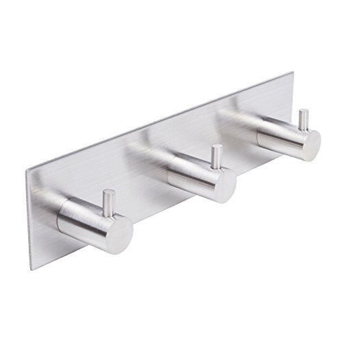 Agile-Shop Bath Towel Hooks Rack Coat and Robe Hook Rack - 3M Self Adhesive Brushed Nickel (Three)