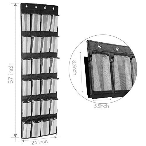 -. Feature : Material:high quality Sturdy breathable 600D Oxford / Hang it behind a door, 4 metal over the door hooks supplied.Hanging buckle 4.5cm suitable for most of the door only 1mm thickness will not affect the opening and closing of the door / There are 24 pockets which are large enough to put one mens size 12 shoe or one pocket can fit a pair of flats or sandals, meaning you can store between 12 and 24 pairs of shoes / Organize your bathroom, pantry, kitchen, laundry room, garage, bedroom, closet, garage, play room, College dorm room with ease / Dimensions: 57"L x 24"W