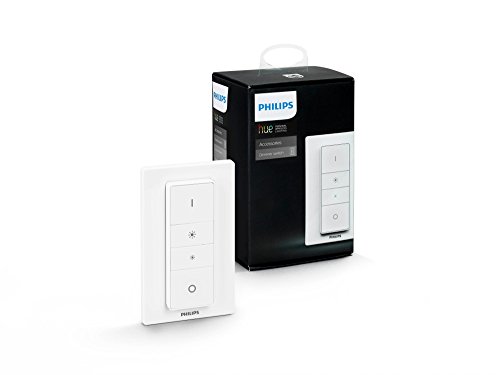 Change the way you control light at home with the Philips Hue Dimmer Switch with Remote. Quickly dim or brighten up to 10 of your room lights for games, parties, and movies from the comfort of your couch or bed. Requiring the Hue Bridge (sold separately) for the full Hue experience, this battery-powered dimmer with remote smoothly and wirelessly adjusts your lights' intensity without any added installation. Mount the dimmer anywhere you want with the included screws or adhesive tape and control using the remote or the Philips Hue App with the Hue Bridge. Make it part of your Hue home lighting system with Hue accessories (sold separately) such as the tap or motion sensor. Control by voice with Amazon Alexa, Apple HomeKit, and Google Assistant. Connect it with your Nest or Samsung SmartThings system for smart home control. Each kit includes one dimmer switch with wall plate and remote, a CR2450 battery, screws, manual, and two-year warranty.Feature