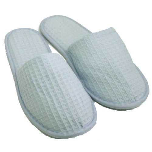 -. Feature : Slippers Made From 65% Top Quality Cotton,35% Polyester / Waffle Closed Toe Slippers, Non Skid / These Slippers for Unisex / One Size 11.5" Length / Spa/Hotel Slippers