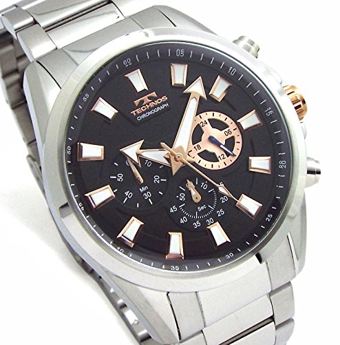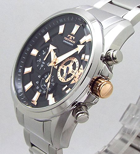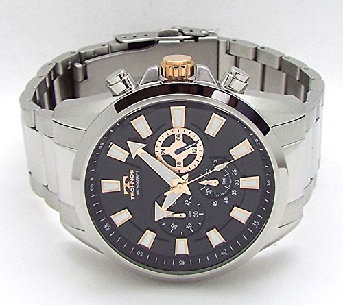 -. Feature : テクノス TECHNOS メンズ クロノグラフ 10気圧防水 1/1SEC 60分 ストップウォッチ機能 / 直径約46mm(リューズ含み49.0mm) 厚み約13mm フェイス縦幅約55mm ベルト最大内径21cm / SII セイコーインスルツ( セイコー SEIKO )製クォーツ式クロノグラフムーブメント搭載 / ビッグフェイスかつ蓄光インデックスで視認性にすぐれたモデルとなっております。 / ダブルロック式バックル 専用BOX バンド調節工具 付属 保証書兼取り説付属
