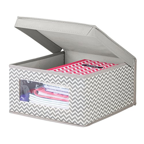 mDesign Chevron Fabric Office Storage Organizer, Box for Paper, Notebooks, Pens, Pencils, White-Out - Medium, Taupe/Natural