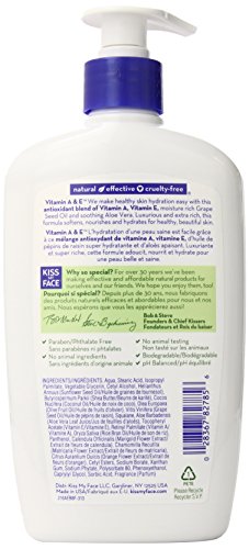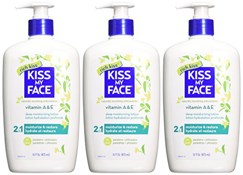 -. Binding : Health and Beauty -. Brand : Kiss My Face -. EAN : 0028367827856 -. Feature : Vitamin A prevents dryness and loss of elasticity / Vitamin E is an antioxidant / Paraben Free / Jasmine, Iris, and Carrot further soften and nourish your skin / Please read all label information on delivery -. IsAdultProduct : 0 -. Label : Kiss My Face -. Manufacturer : Kiss My Face -. Model : Kis-3915 -. MPN : 0201616 -. NumberOfItems : 3 -. PackageQuantity : 3 -. PartNumber : 0201616 -. ProductGroup : Beauty -. ProductTypeName : BEAUTY -. Publisher : Kiss My Face -. Size : (3 Pack) -. Studio : Kiss My Face -. Title : Kiss My Face Vitamin A & E Ultra Moisturizer, 16-Ounce Pumps (Pack of 3) -. UPC : 028367827856